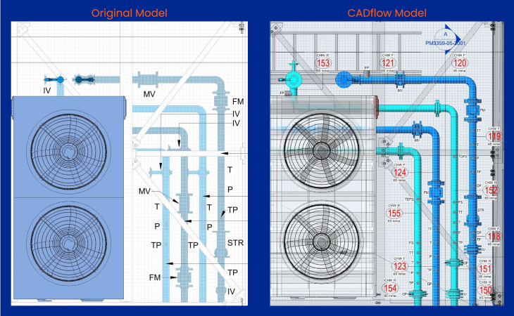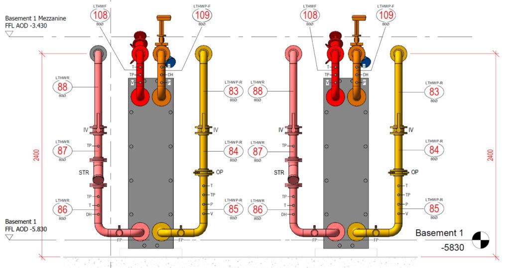 Here at CADflow, we pride ourselves on our meticulous approach to every task, guaranteeing exceptional quality in our models and drawings. We excel in the design of plant rooms. We hold unwavering confidence in our designs and final outcomes, believing they will significantly contribute to our clients winning repeat business from their own clientele.